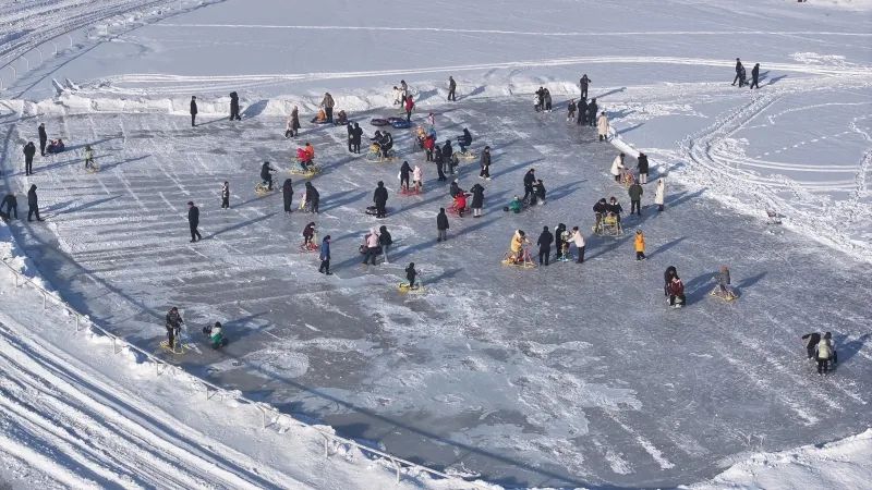 享受冬季冰雪旅游活动的群众。