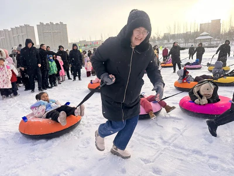 活动吸引了众多学生和家长的参与,一系列丰富多彩的冰雪项目依次展开。在现场,家长和孩子们手牵手,相互配合,一同在冰面上滑行,在雪地中奔跑传递,尽情享受冬天的乐趣,不仅锻炼了身体,更增进了亲子间的默契。