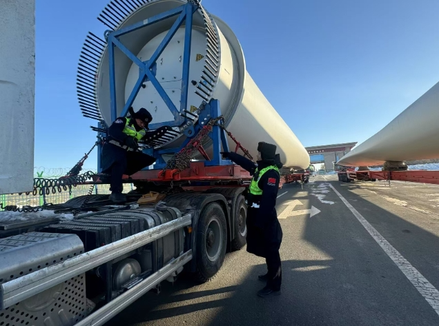 今年,口岸出口商品种类进一步丰富,涵盖机电产品、农产品、纺织品、新能源设备等多个领域。巴克图口岸凭借其独特的地理优势和政策支持,近年来出口贸易规模持续扩大,其中新能源产业布局中的装备制造,主要生产风机叶片、风机塔筒等先进装备,其过大的体型需要更大的转弯半径,巴克图口岸为其提供更顺利的公路运输条件。