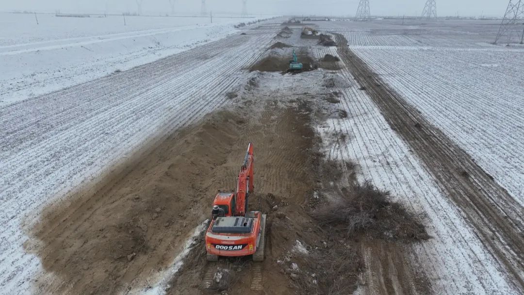 目前,已完成土方平整、田间道路16公里、管沟开挖102公里、管线安装65公里、沉砂池基础开挖等。项目2月26日复工,计划4月5日完工并投入使用。