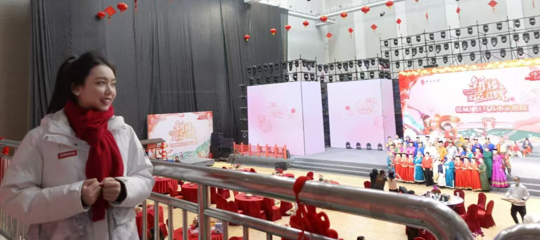 刘羽西参加乌苏市“群众村晚”志愿服务活动。