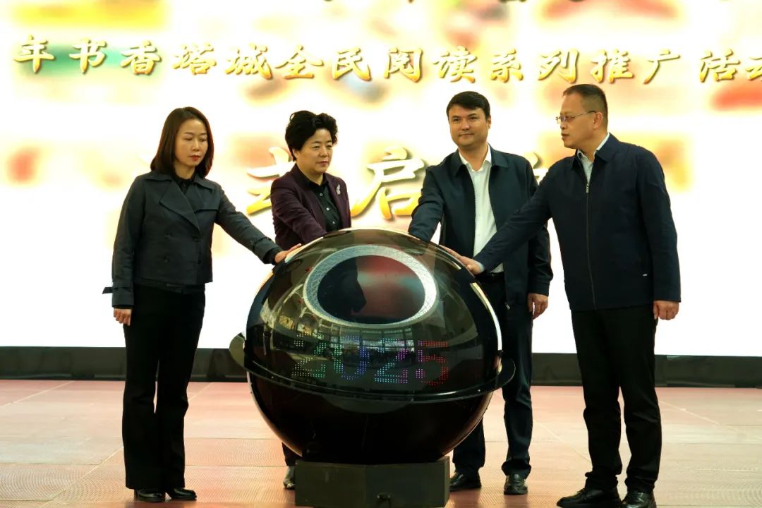 启动仪式上,四位嘉宾共同按下启动球体按钮,标志着2025年书香塔城全民阅读系列推广活动正式拉开帷幕。