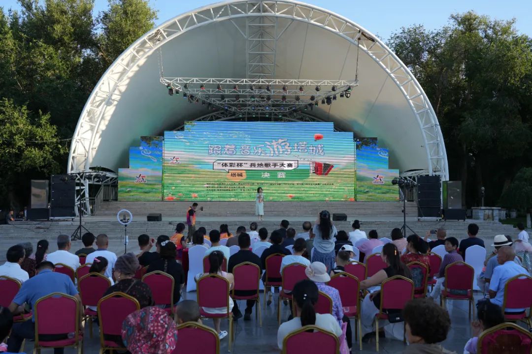 7月12日,塔城地区“跟着音乐游塔城”“体彩杯”兵地歌手大赛决赛现场。