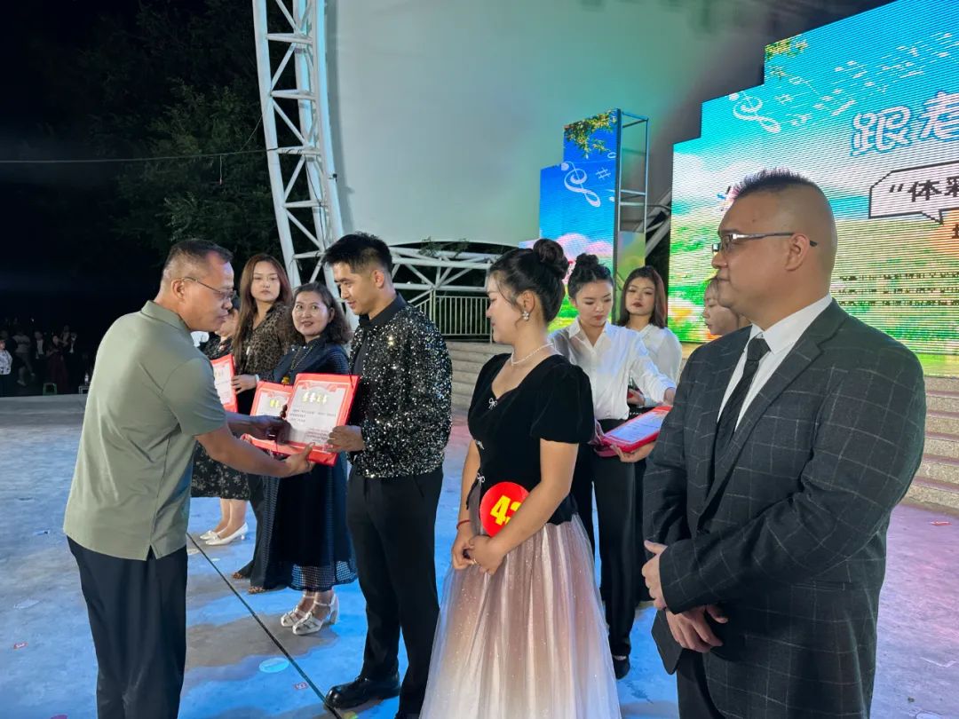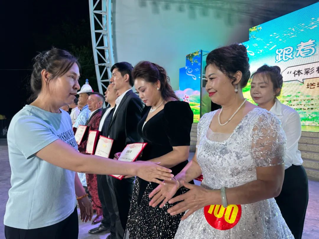 7月12日,塔城地区“跟着音乐游塔城”“体彩杯”兵地歌手大赛决赛现场,为获奖选手颁奖。