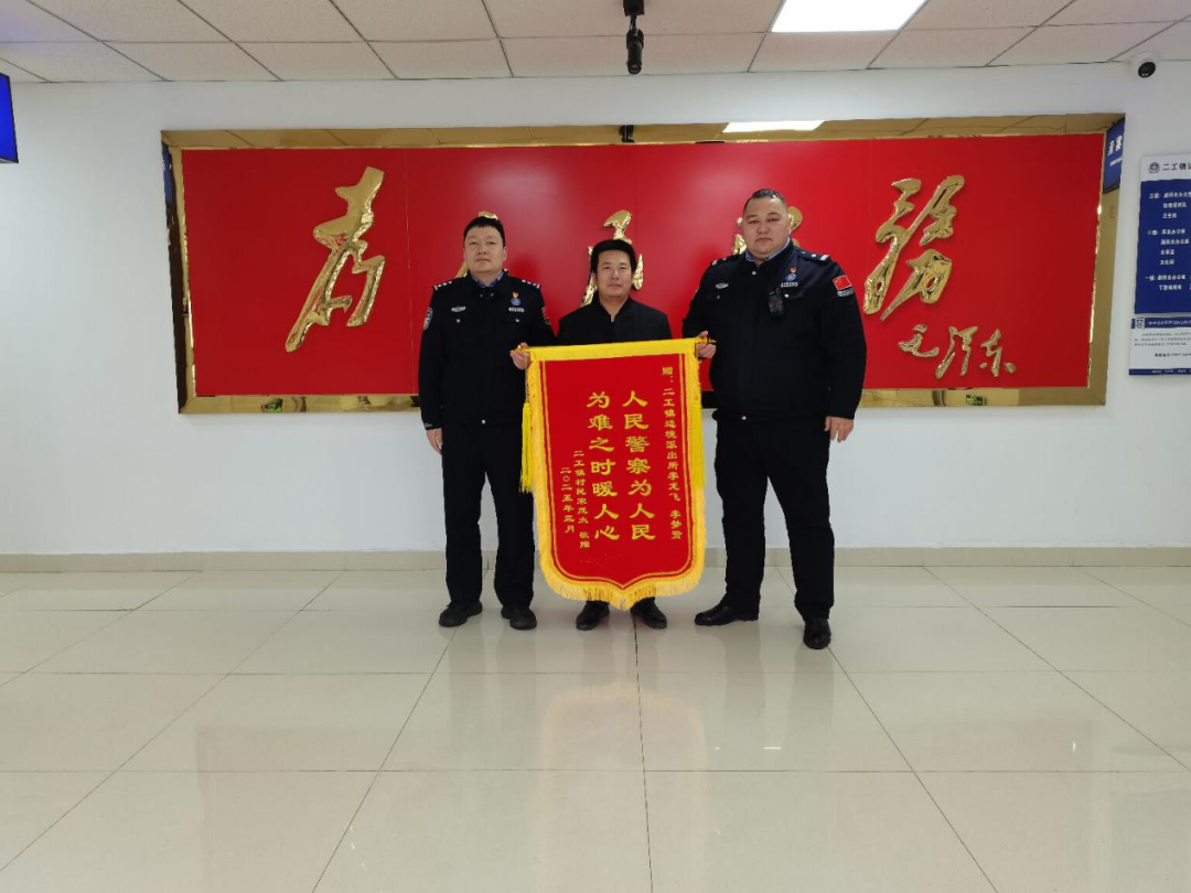 努尔兰别克·斯德合为群众办实事获赠锦旗(左二)。