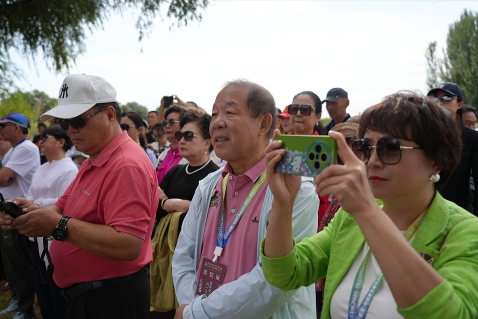 “库鲁斯台草原与阿拉湖浪漫之约”跨境游启动仪式现场,群众纷纷拍照打卡。
