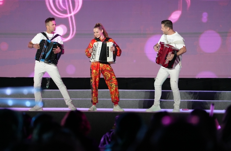 2025新疆・塔城第五届手风琴文化国际艺术节开幕晚会,国外手风琴艺术家演奏《最炫民族风》。