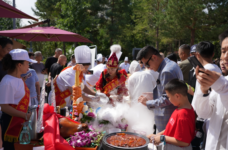 国内外嘉宾踏着音乐来到美食大赛现场。