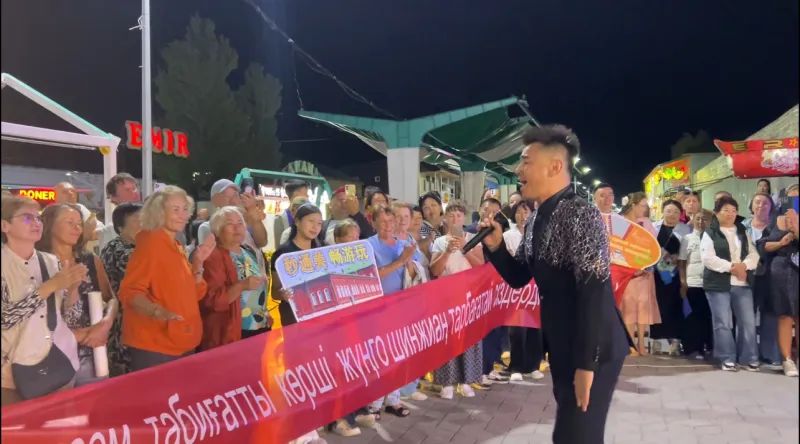 演出间隙,新疆塔城文旅推广大使伊明江热情洋溢地向哈萨克斯坦、俄罗斯的游客和民众全面展示了塔城深厚的人文底蕴、优美的自然风光和跨境旅游优势。从壮美的雪山草原到浓郁的特色文化,从油画般的城市景观到便捷的跨境通道,塔城特色文化魅力及1日游、3日游、5日游精品线路引发游客阵阵赞叹。