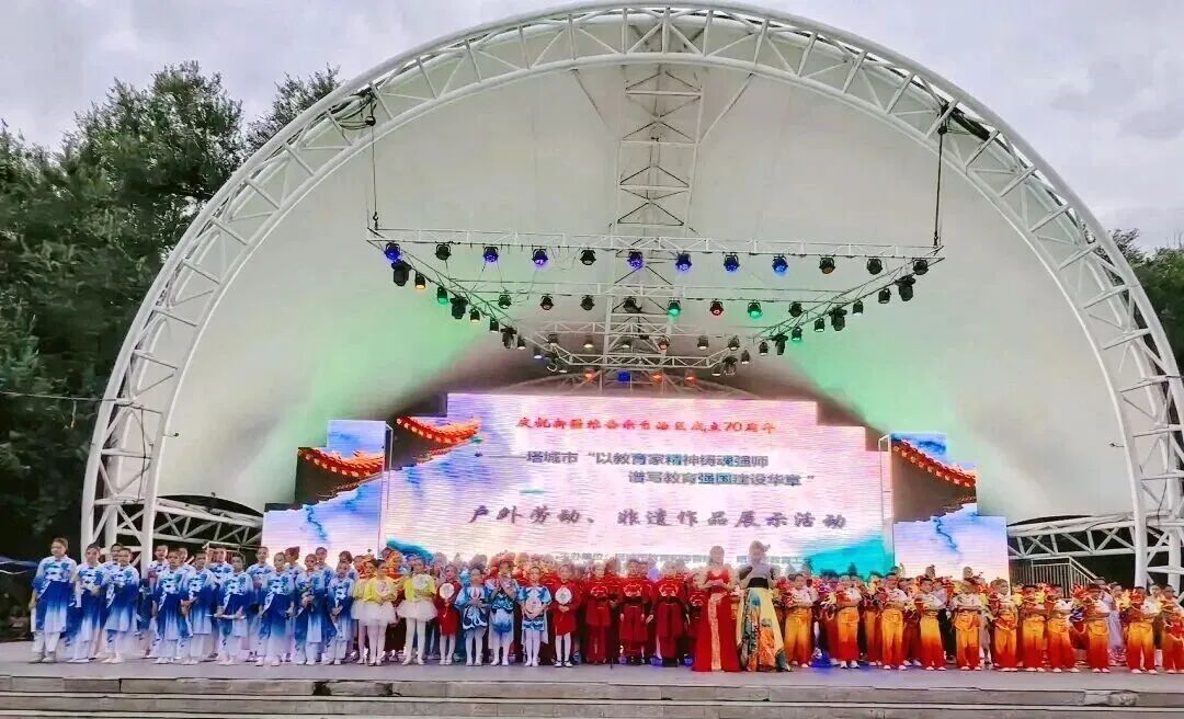 9月8日下午,塔城市教育和体育局、市教育工会在音乐广场举办“以教育家精神铸魂强师 谱写教育强国建设华章 ”户外劳动、非遗作品展示活动。来自全市各中小学、幼儿园的1100余名师生齐聚一堂,以实干践行教育初心,以传承延续文化根脉,为新疆维吾尔自治区70周年献上来自教育系统的深情礼赞。