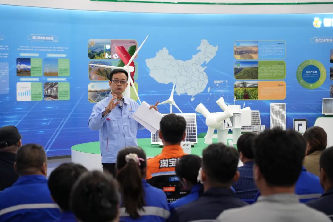 实地观摩后,在国家电投塔城新能源创新产业园(新能源规划馆),“全国劳动模范”、“三秦工匠”彭永利结合自身一线工作经历,讲述技术攻关、团队协作和精益求精的实践故事,激励广大工友立足岗位、锤炼技能、勇于创新。