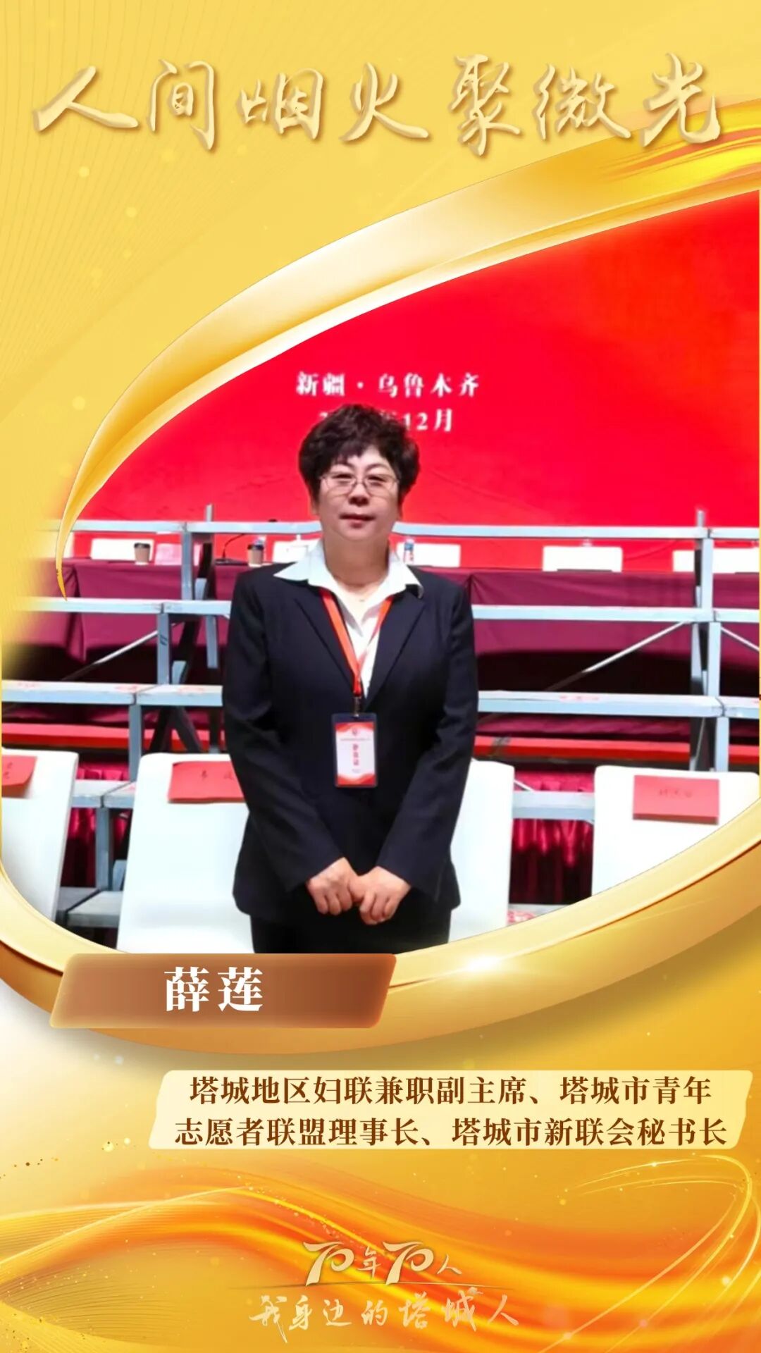 薛莲,女,汉族,1971年10月出生,1990年12月参加工作,现任塔城地区妇联兼职副主席、塔城市青年志愿者联盟理事长、塔城市新联会秘书长,同时担任塔城爱心天使团、雷锋车队负责人。