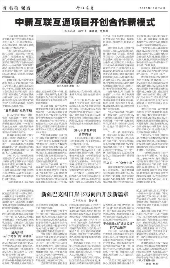 这是巴克图口岸向西开放的生动注脚。随着高质量共建“一带一路”深入推进,当地以智能化通关、平台化合作、全域化文旅的“三重跃升”,驱动经济社会发展强劲引擎,不断书写高水平开放新篇章。