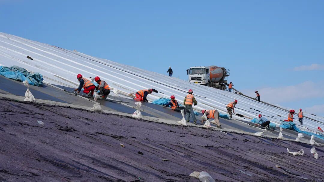 塔城地区水务集团中标裕民县哈拉布拉灌区蓄水调节池工程施工现场。