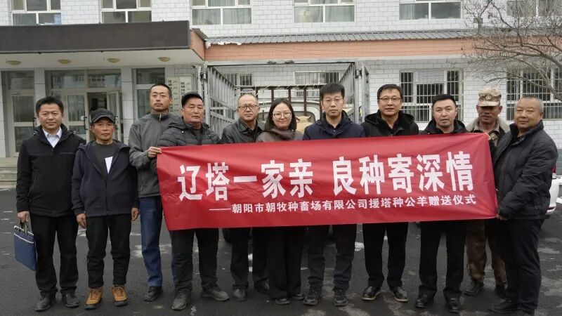 辽塔一家亲 良种寄深情——朝阳市朝牧种畜场有限公司援塔种公羊赠送仪式合影。