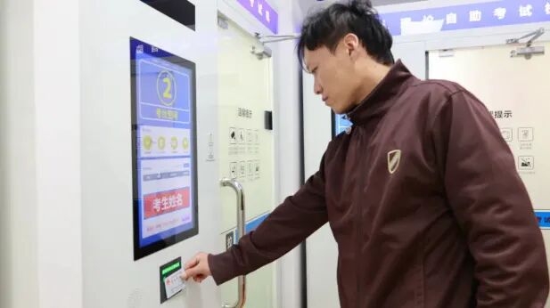 考生预备进入智能考试亭考试。