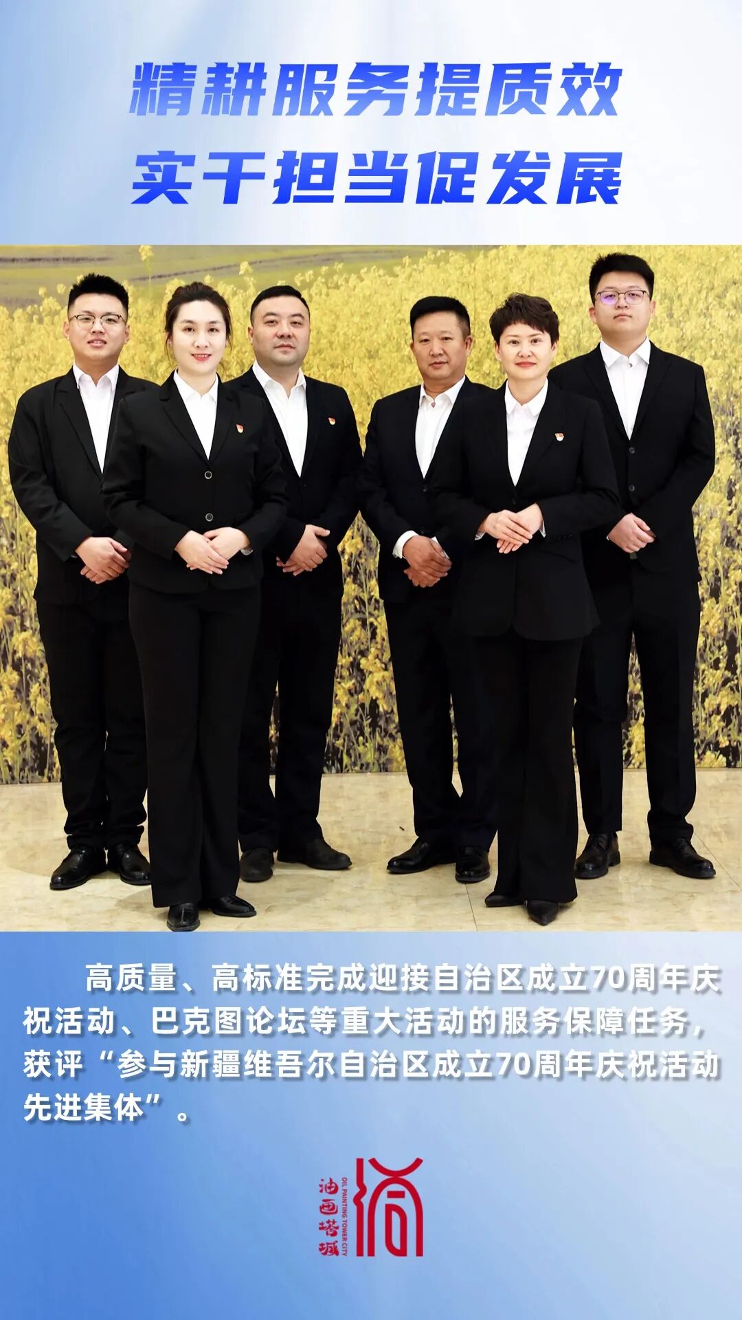 以“制度创新”筑牢服务根基,夯实保障中心硬核支撑;以“匠心标准”提升接待质效,搭建助力发展优质平台;以“协同联动”凝聚工作合力,圆满完成各类重要会议、考核调研、招商活动的接待保障任务400余次。高质量、高标准完成迎接自治区成立70周年庆祝活动、巴克图论坛等重大活动的服务保障任务,地区机关事务管理局被评为“参与新疆维吾尔自治区成立70周年庆祝活动先进集体”。