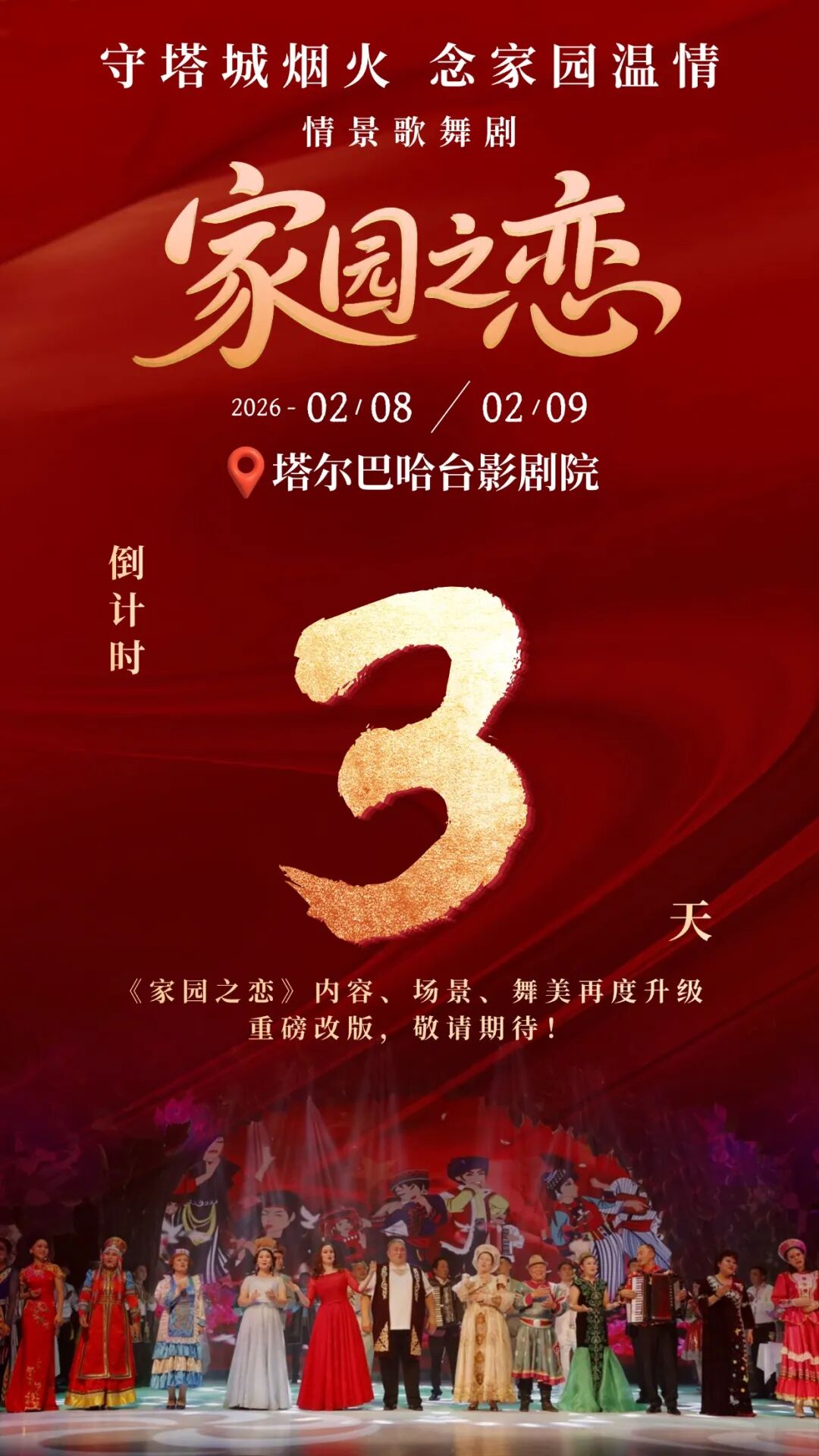 海报 | 倒计时3天!守塔城烟火 念家园温情 情景歌舞剧《家园之恋》即将开演 2026-02-05 11:46:58 塔城零距离 点击:[] 打印 分享到: 守塔城烟火 念家园温情情景歌舞剧《家园之恋》即将开演倒计时3天! 相关内容 【关闭】