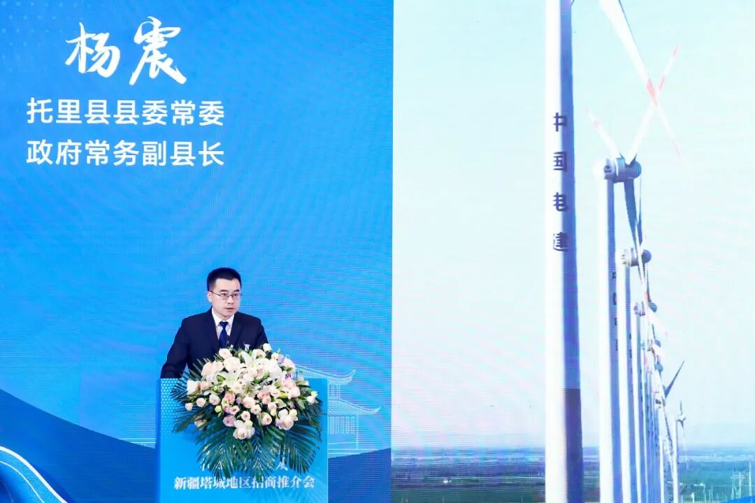“苏塔携手兴丝路 机遇共享赢发展”新疆塔城地区招商推介会项目签约仪式上托里县代表作推介。