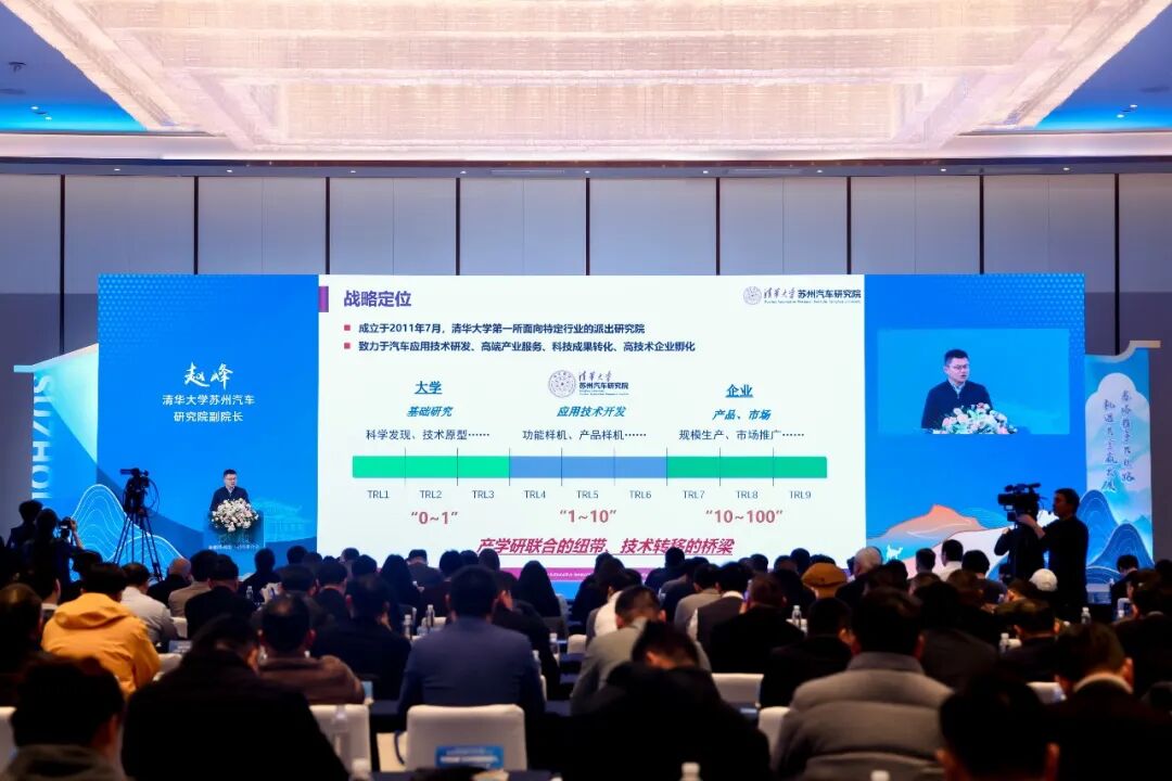 “苏塔携手兴丝路 机遇共享赢发展”新疆塔城地区招商推介会项目签约仪式上清华大学苏州汽车研究院副院长赵峰发言。