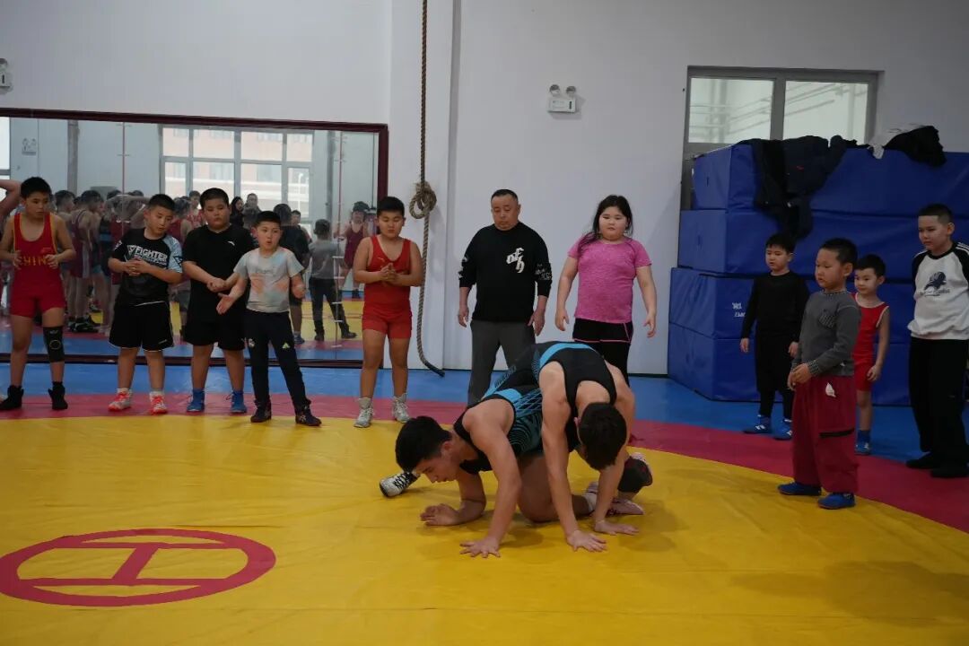 摔跤训练中。