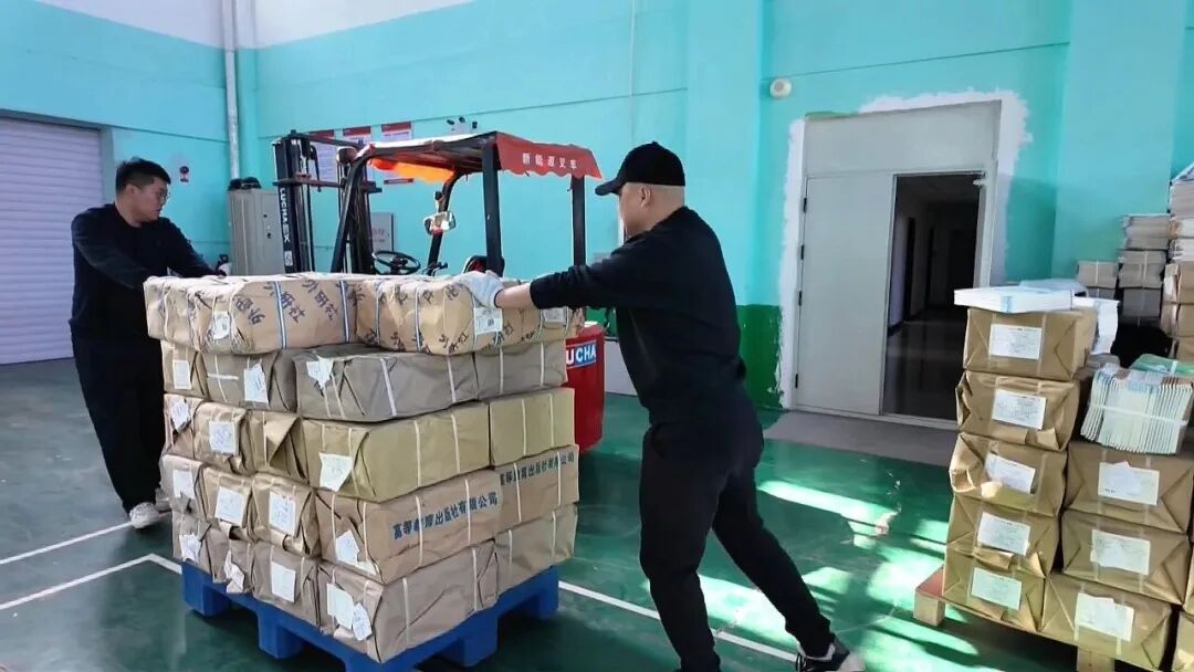走进塔城新华书店教材仓库,一派繁忙有序的景象映入眼帘,码放整齐的教材教辅堆积如山,涵盖中小学各年级443个品种,工作人员正按照标准化流程,逐一核对教材版本、清点数量、分类分拣,搬运、装车等环节无缝衔接。随后,满载教材的货车陆续驶出仓库,分批奔赴全市各中小学,开启“最后一公里”配送。