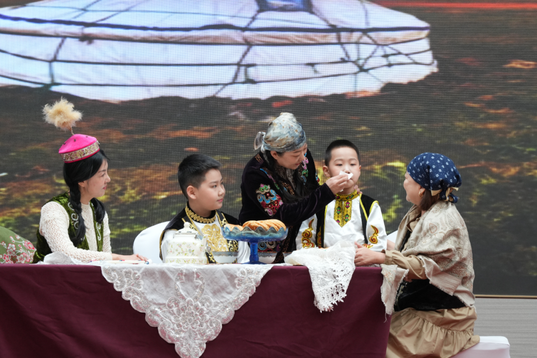 丁香书社带来的情景剧《塔城密钥》经典片段,将观众带入塔城的历史深处,在情景演绎中解锁文化密码,感受家乡的独特魅力。孩子们的诗朗诵同样动人心弦——《少年中国说》铿锵有力,展现青春力量;个人情景诗朗诵《大山里的光》与双人朗诵《枸杞花开》深情婉转,传递人间大爱与坚守温暖。