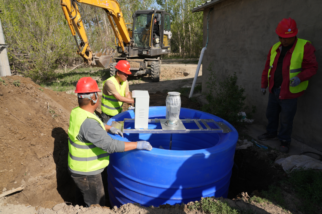 施工人员在安装搅拌罐。塔城地区融媒体中心记者代姣美摄