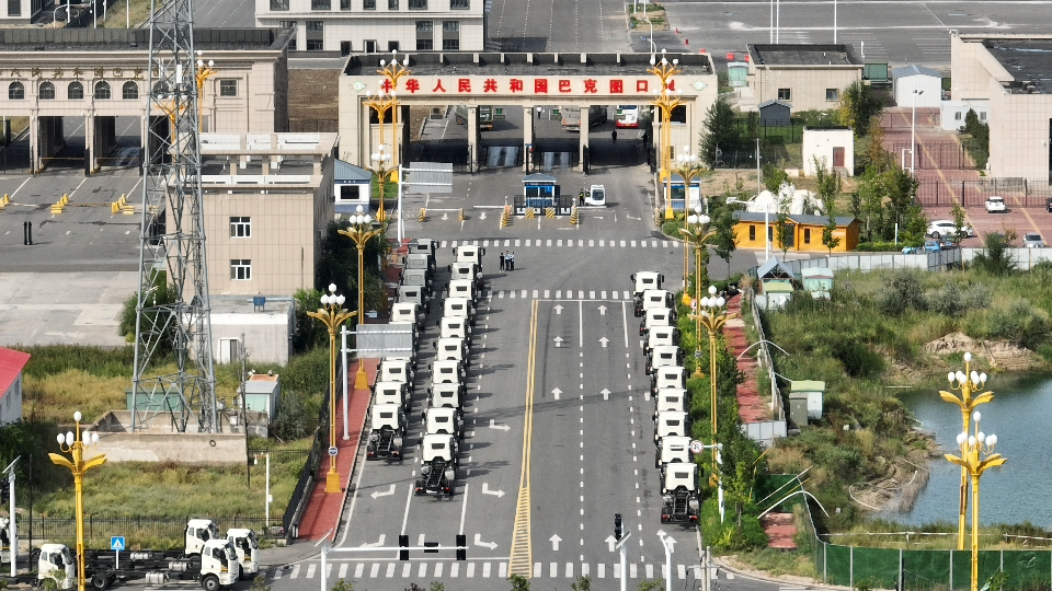 9月6日早晨,巴克图口岸刚一开关便进入车来车往的繁忙模式,一排排货车在入境检查厅门口排成长龙,等待办理入境通关手续。