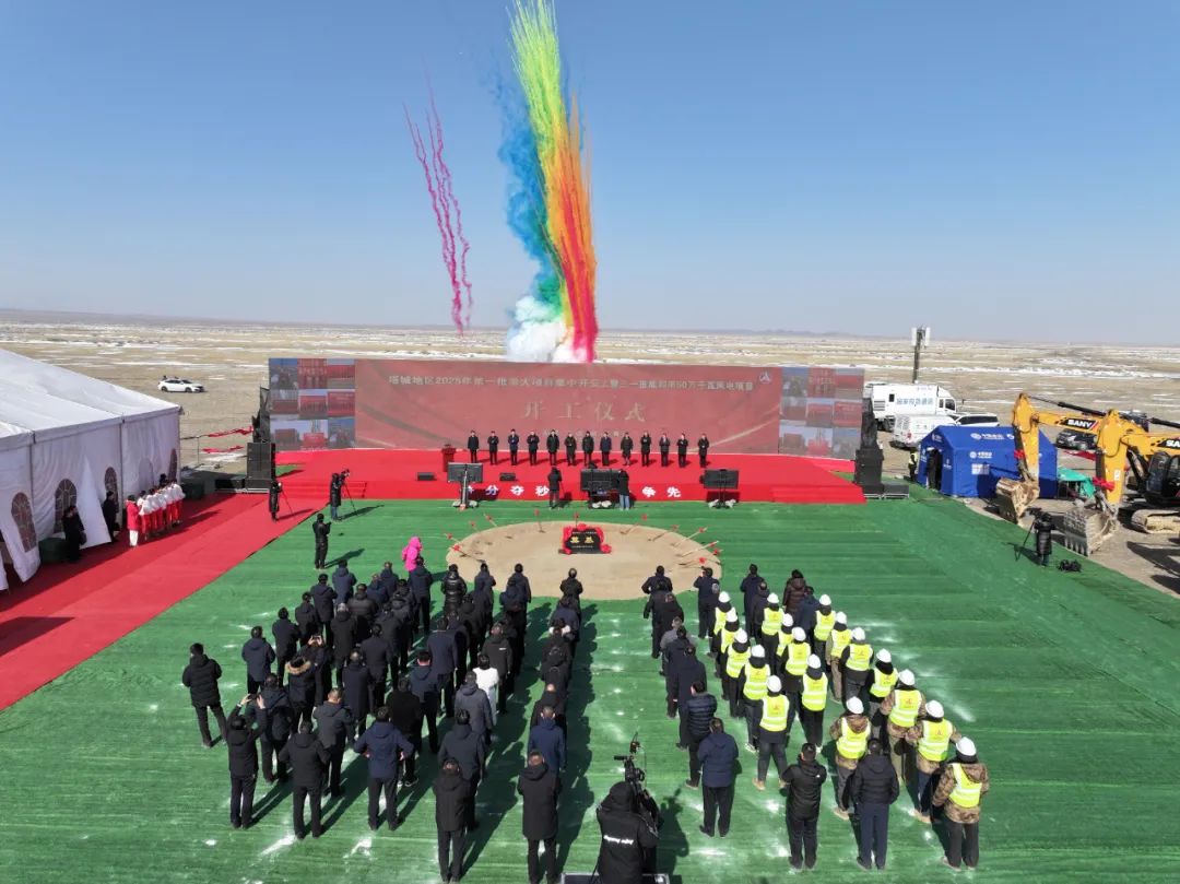 2月26日,在塔城地区2025年第一批重大项目集中开复工暨三一重能和丰50万千瓦风电项目开工仪式现场,随着一声开工令响起,247个重大项目集中开复工,吹响了塔城奋进新征程的时代号角。