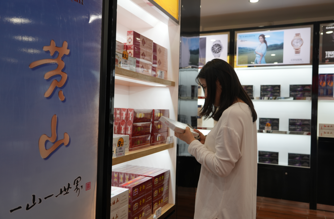 正在免税店内挑选的客人。塔城地区融媒体中心记者苏珊琳摄