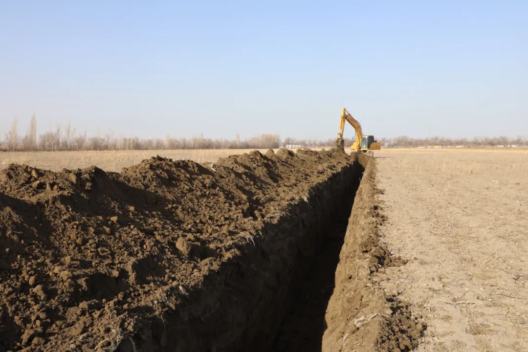额敏县郊区乡加依勒玛村高标准农田项目建设现场。