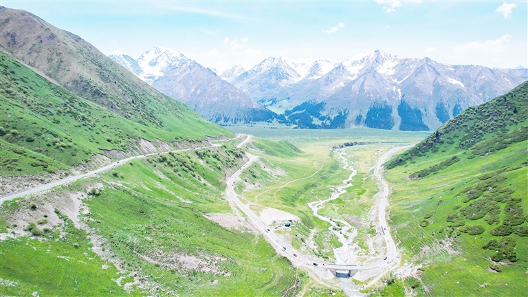 新疆“最美公路”独库公路通车 2025-06-03 16:17:01 塔城日报 点击:[] 打印 分享到: 5月31日,新疆独库公路北段乌苏段哈希勒根达坂,山路蜿蜒,游人如织,车辆川流不息。独库公路横跨天山,是连接南北疆的重要通道,全长500余公里,其中有280多公里路段在海拔2000米以上,沿途经过峡谷、冰川、湖泊、草原、森林、戈壁等多种景观,是游客自驾的“网红公路”,被誉为新疆“最美公路”。 【关闭】
