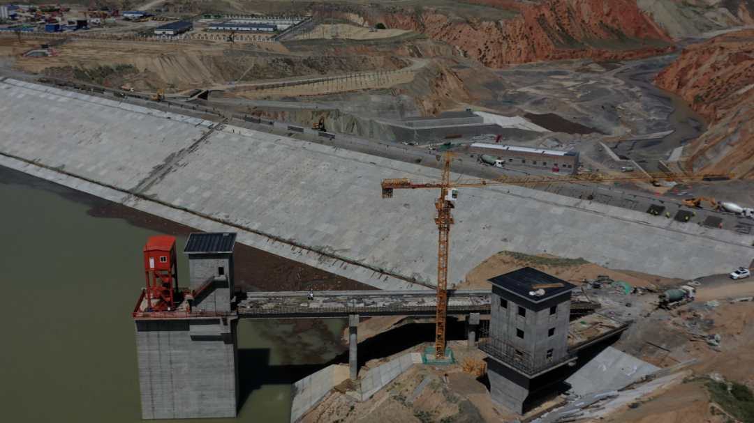 新疆金沟河红山水库工程最大坝高75.8米,主要由大坝、溢洪道、导流兼泄洪冲沙洞、引水发电洞、发电厂房等部分组成。工程于2022年3月15日正式开工建设,2023年5月7日顺利完成导(截)流,2024年10月31日大坝主体封顶,12月18日顺利通过下闸蓄水阶段验收,12月30日正式下闸蓄水,目前蓄水位最高深度达40余米,工程计划9月底整体完工,年底前可蓄水至正常水位。