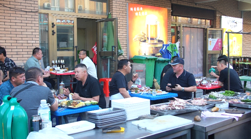6月8日,在沙湾市大盘美食一条街。记者看到,各家店铺里人气火爆,座无虚席,来自全国各地的食客纷纷前来打卡,体验地道特色风味美食。随着假期持续,各餐饮企业也是充分准备,以最优质的服务迎接八方来客,让每一位游客都能享受到地道的风味美食。