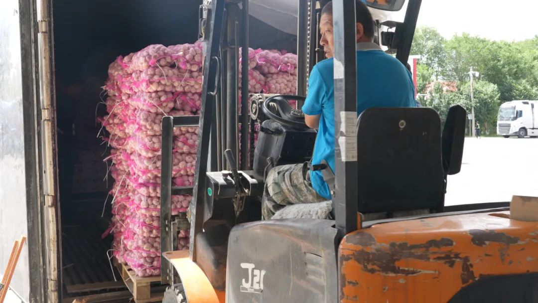 国外货运车辆到永利商贸有限公司装载果蔬。