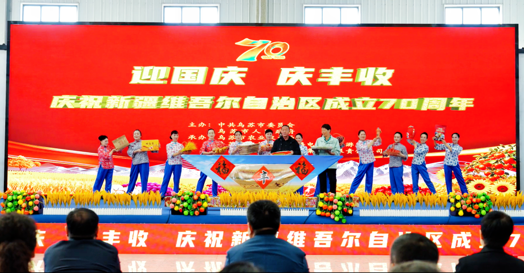 乌苏市“迎国庆·庆丰收 庆祝新疆维吾尔自治区成立70周年”农民丰收节活动现场。乌苏市融媒体中心提供