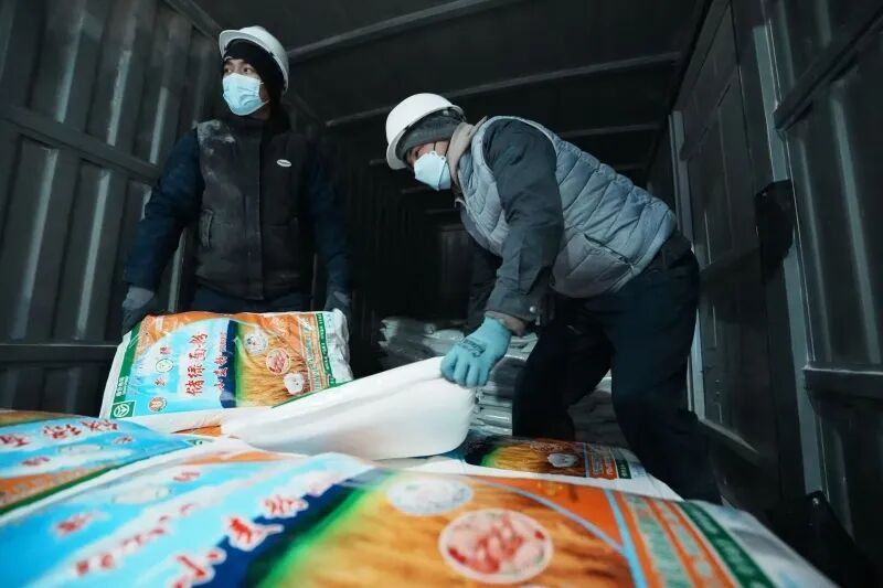 12月4日早晨,运输员在将储绿面粉进行装货。