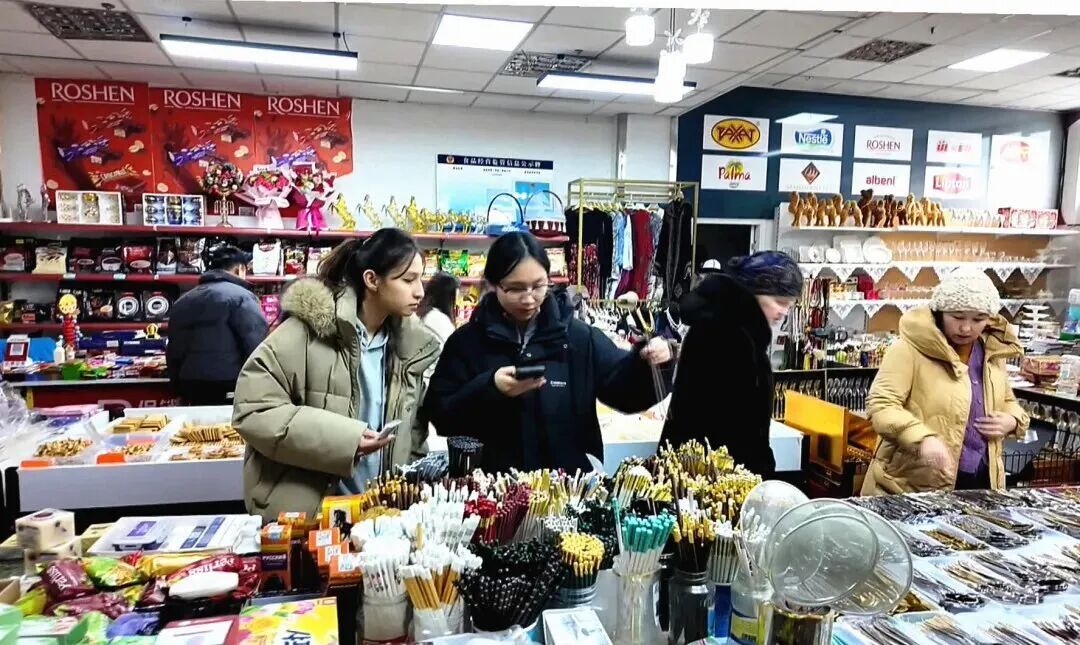 “为迎接新春佳节,我们提前几个月就开始备货,重点加大了中亚特色食品和日用品的备货量。春节期间,客流量明显增多,红酒、糖果、巧克力、蜂蜜等商品销量十分可观。我们持续优化服务,让顾客买得放心、逛得开心、用得安心。”胡雪说。