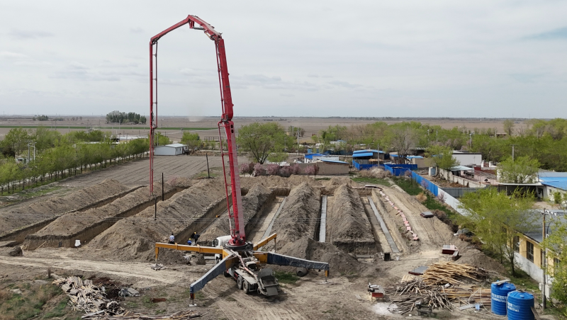 4月21日,在乌苏市头台乡头台一村制菌基地建设项目现场,机械轰鸣,施工正酣,工人们抢抓工期、有序作业,一派热火朝天的景象。