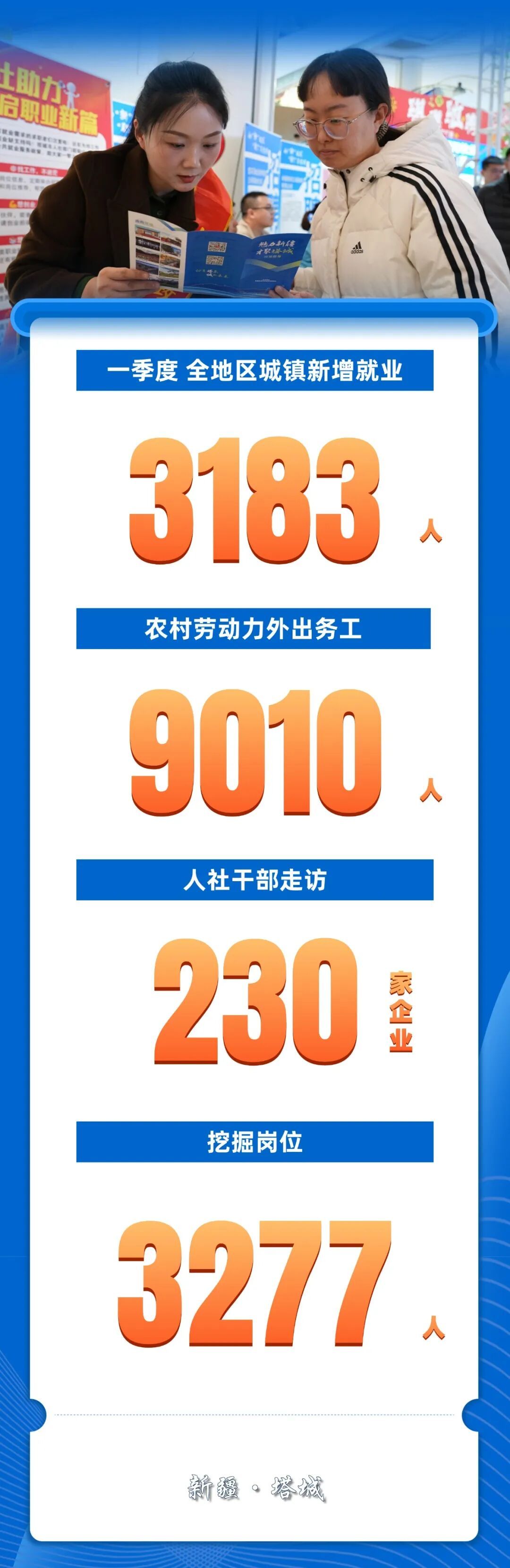 一季度,全地区城镇新增就业3183人,农村劳动力外出务工9010人,零就业家庭继续保持动态清零,新增创业966人,创业带动就业211人。人社干部走访230家企业,挖掘岗位3277个;线上线下举办招聘会69场,直播带岗18场,观看人数超过4.7万人次。