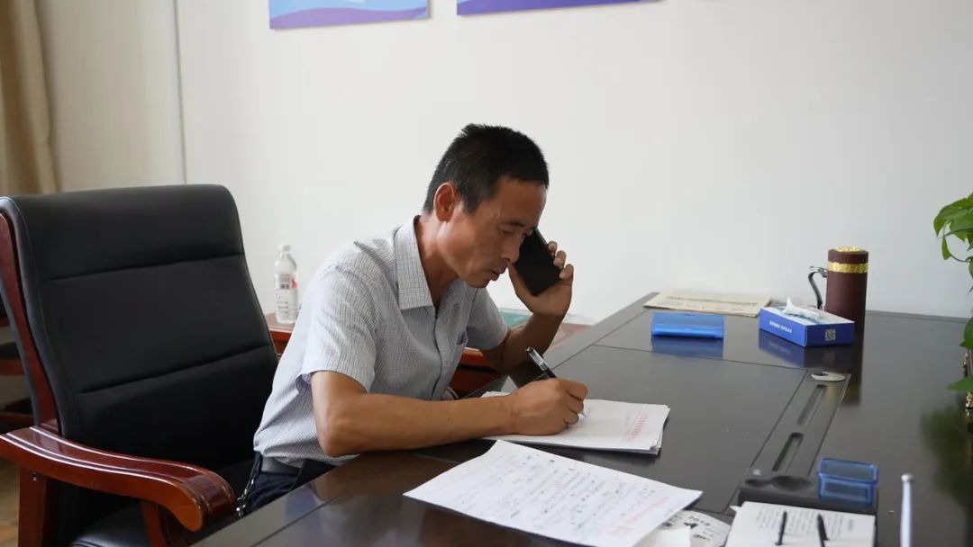 唐立利在工作室边接打电话,边记录用工信息。