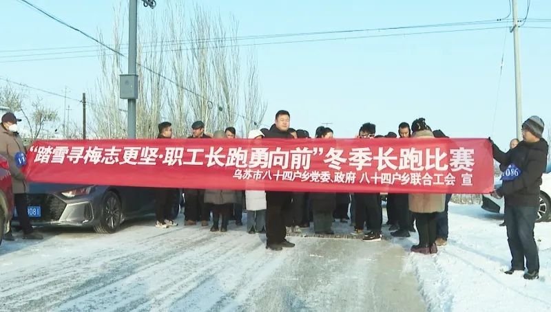 在乌苏市八十四户乡开展的“踏雪寻梅志更坚·职工长跑勇向前”冬季长跑比赛中,60余名干部职工积极参与,大家不畏严寒、你追我赶,展现了昂扬向上的精神风貌,现场还吸引了不少群众前来为选手们呐喊助威、加油鼓劲。