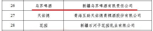 名单中,新疆乌苏啤酒有限责任公司的“乌苏啤酒”、新疆石河子花园乳业有限公司的“花园”、新疆维吾尔药业有限责任公司的“西帕”等新疆本土品牌上榜。