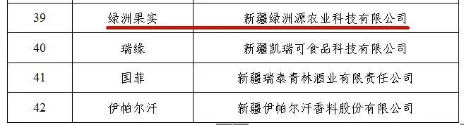 此外,还公示了中国消费名品成长企业名单,共有42个,新疆绿洲源农业科技有限公司的“绿洲果实”、新疆凯瑞可食品科技有限公司的“瑞缘”、新疆瑞泰青林酒业有限责任公司的“国菲”、新疆伊帕尔汗香料股份有限公司的“伊帕尔汗”榜上有名。