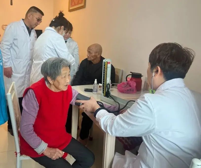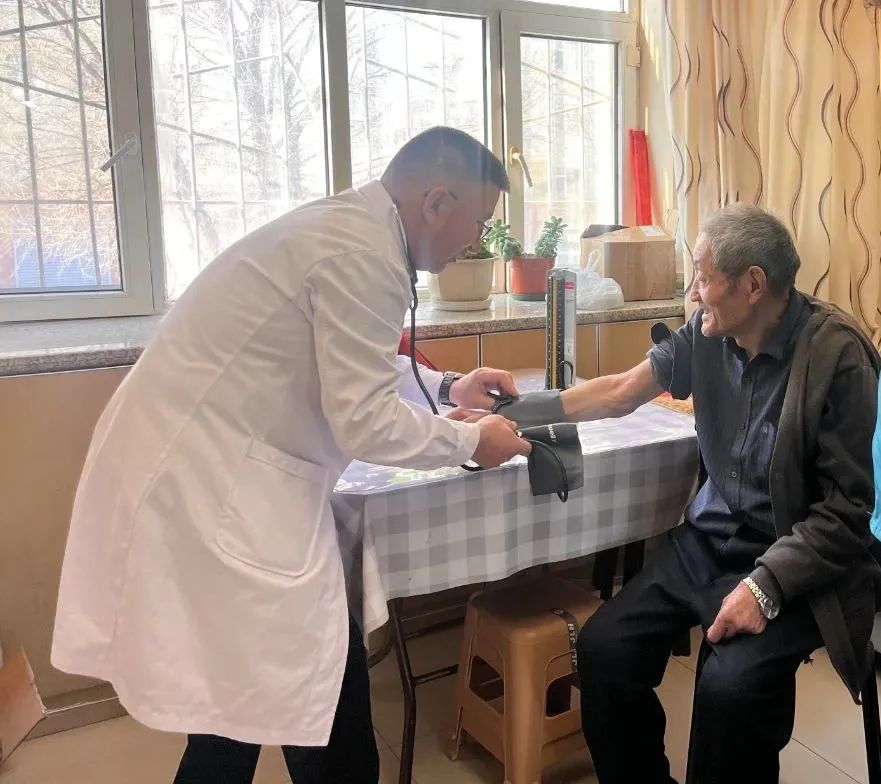 医生正在为居民测量血压。