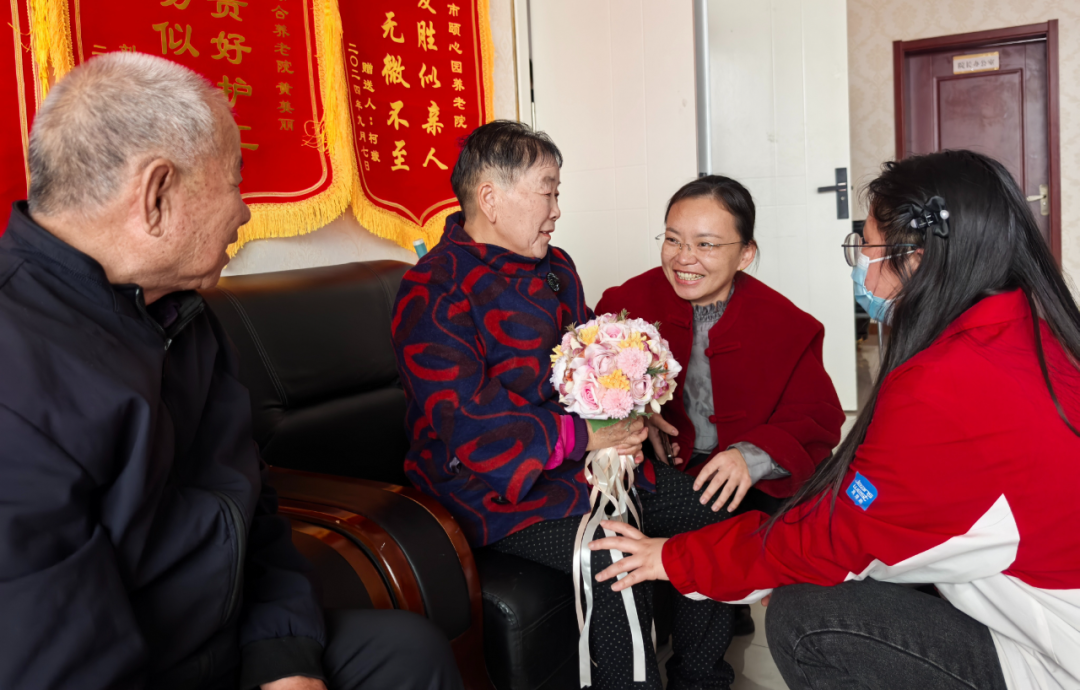 和老人互动。
