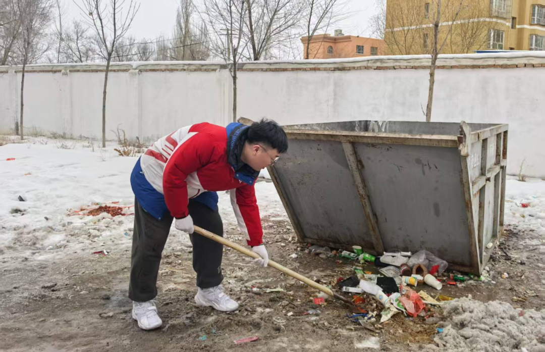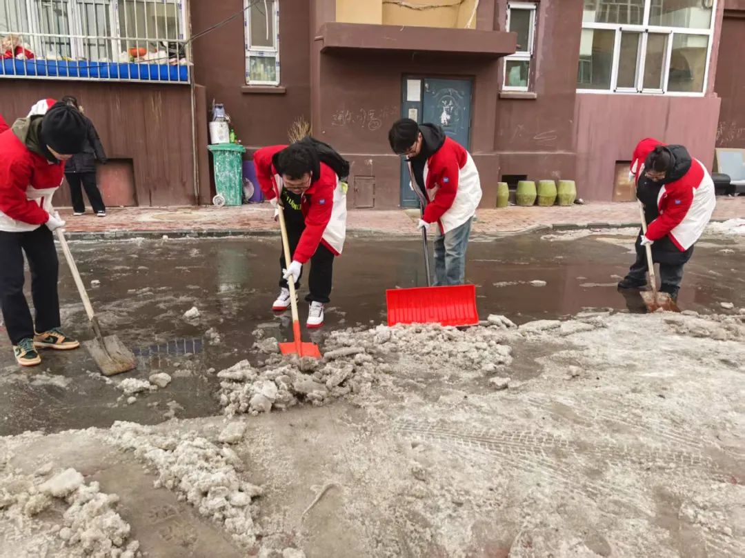 志愿者们拿起雪铲,清理社区积雪、垃圾;同时,还开展了“金融消保在身边 保障权益防风险”宣传活动。