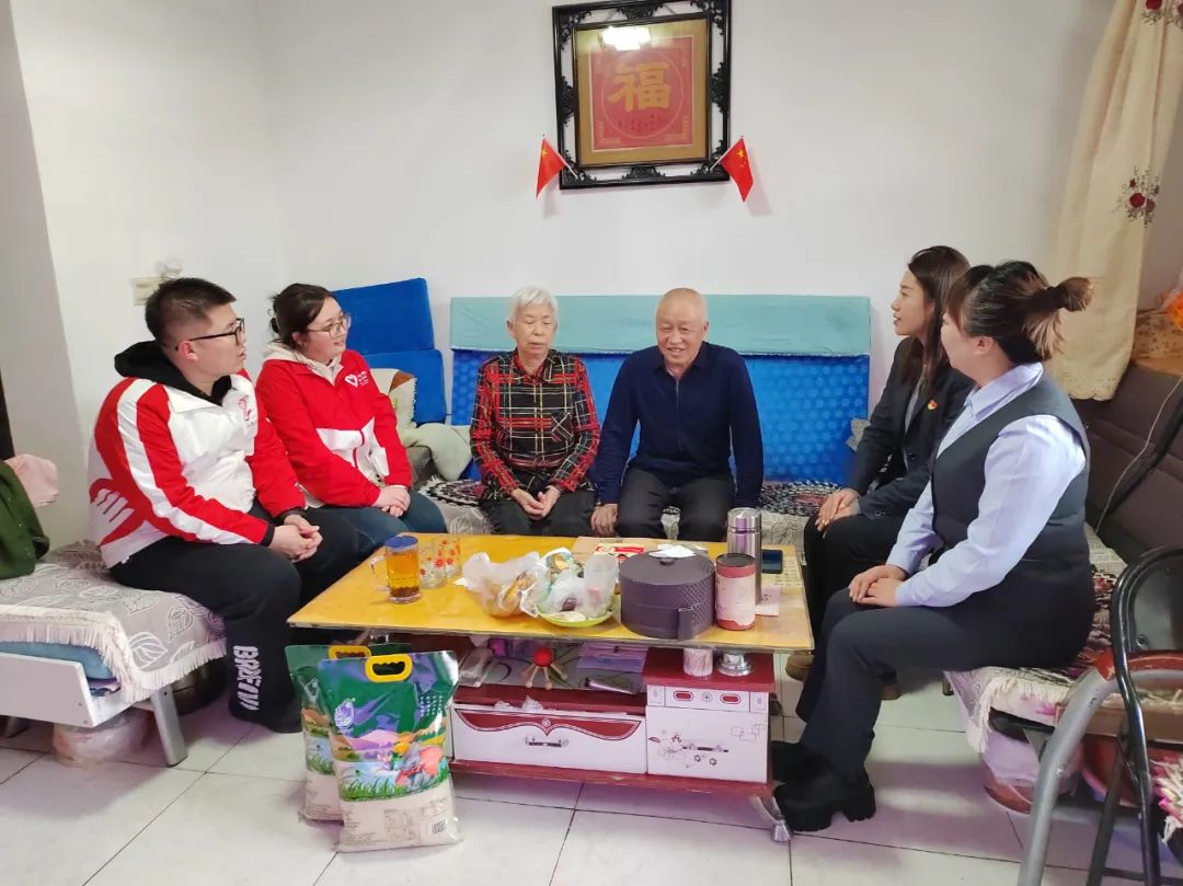 在乌苏市虹桥街道繁荣路社区,西部计划志愿者与中国农业银行股份有限公司乌苏支行党员干部一起,走入困难群众家中,送去春日慰问与党的关怀。
