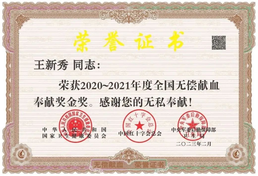 提到献血的事,王新秀自豪地说:“我献的血帮助了许多人,我非常喜欢这种默默奉献的感觉。”